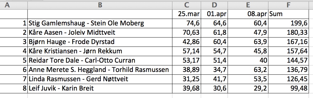 Det var tretten enkle stikk stikk slik det satt, men ingen storeslem som skal meldes akkurat, for sparsitsen var som du ser veldig fordelaktig.