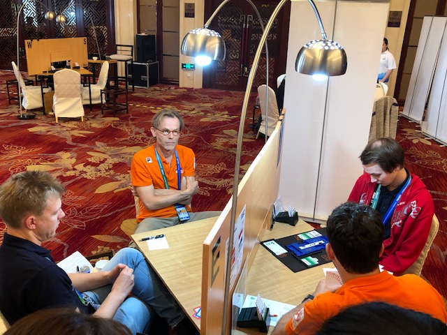 For Norge i klassen for menn spiller Aa-Livgård, Kvangraven-Tundal og Brogeland-Bakke. Boye og Christian "varmet opp" i Kina før IMSA med å vinne en parturnering og vinne sølv i et kinesisk mesterskap rett før mesterskapet i Hengshui startet. Mot Nederland gikk slemspillene en periode i Norges favør.