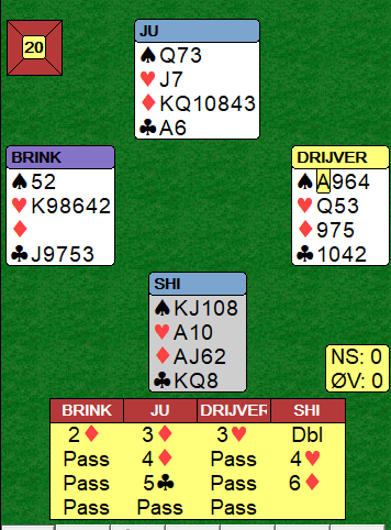De endte i 6 ruter, en god slem. Hvis det hadde vært rutertaper ville det fortsatt vært en god sjanse, kløverfinessen.