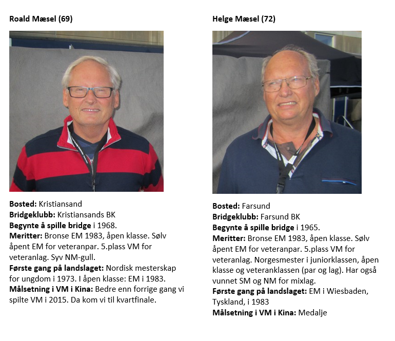 Knut prtøvde seg med ru 8, men Syd hadde ru 10 som vant og spilte ru K opp igjen og Molander fikk for esset. Det fulgte kløver mot bordet, Syd la i damen og kongen vant. Nå valgte Øst å satse på at Syd ikke hadde flere kløvere, han spilte ny ruter der Syd fikk for damen sin. Og nå sto resten! Hvorfor kan du lure på. Jo Syd hadde 5-1-5-2 i fordeling og var jo innspilt og måtte spille enten ruter eller spar til dobbeltrenons. +420 til Ø-V ga dem +122 imp. Bare tre par vant 4 hjerter, men mange var i 5 hjerter som alltid betes. Trolig fordi Syd har vist tofargehånd med 5 kort spar (Michael cue). 4 spar av Syd/Nord er bare en bet, god stamp altså og presser det Ø-V til 5-