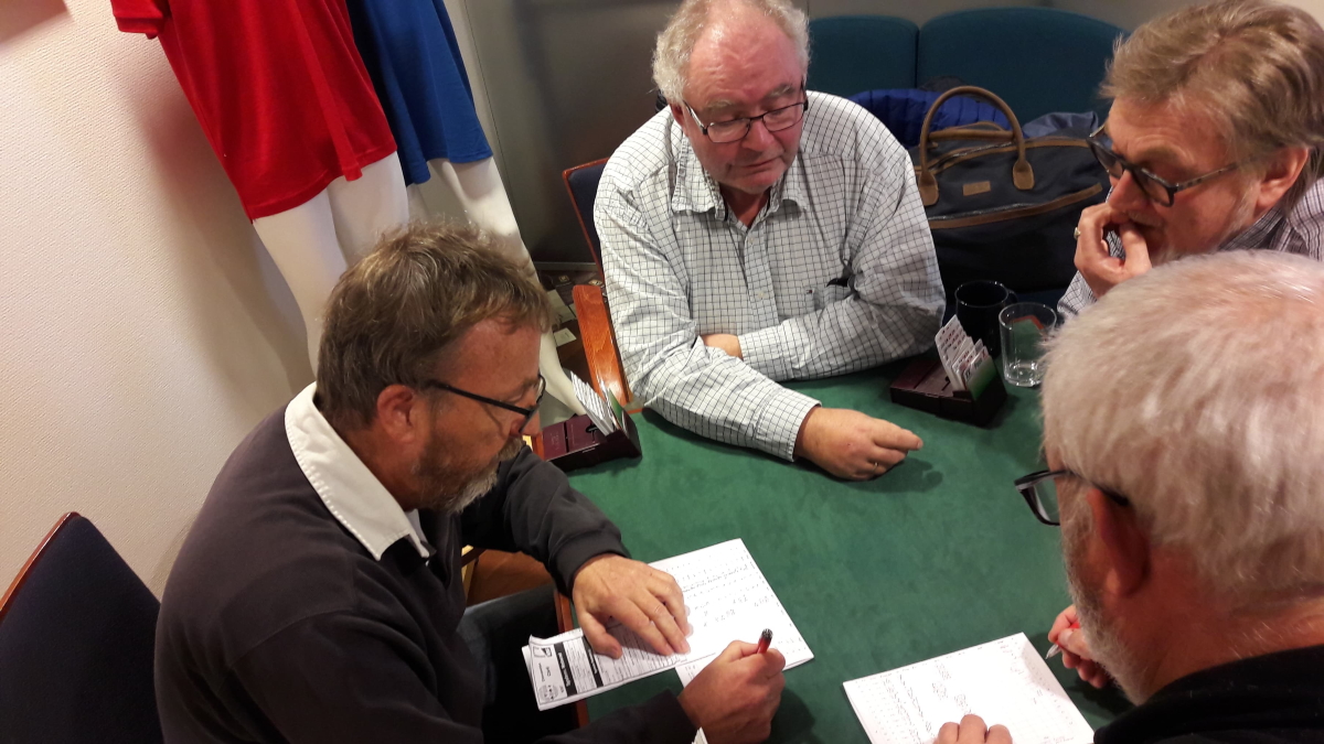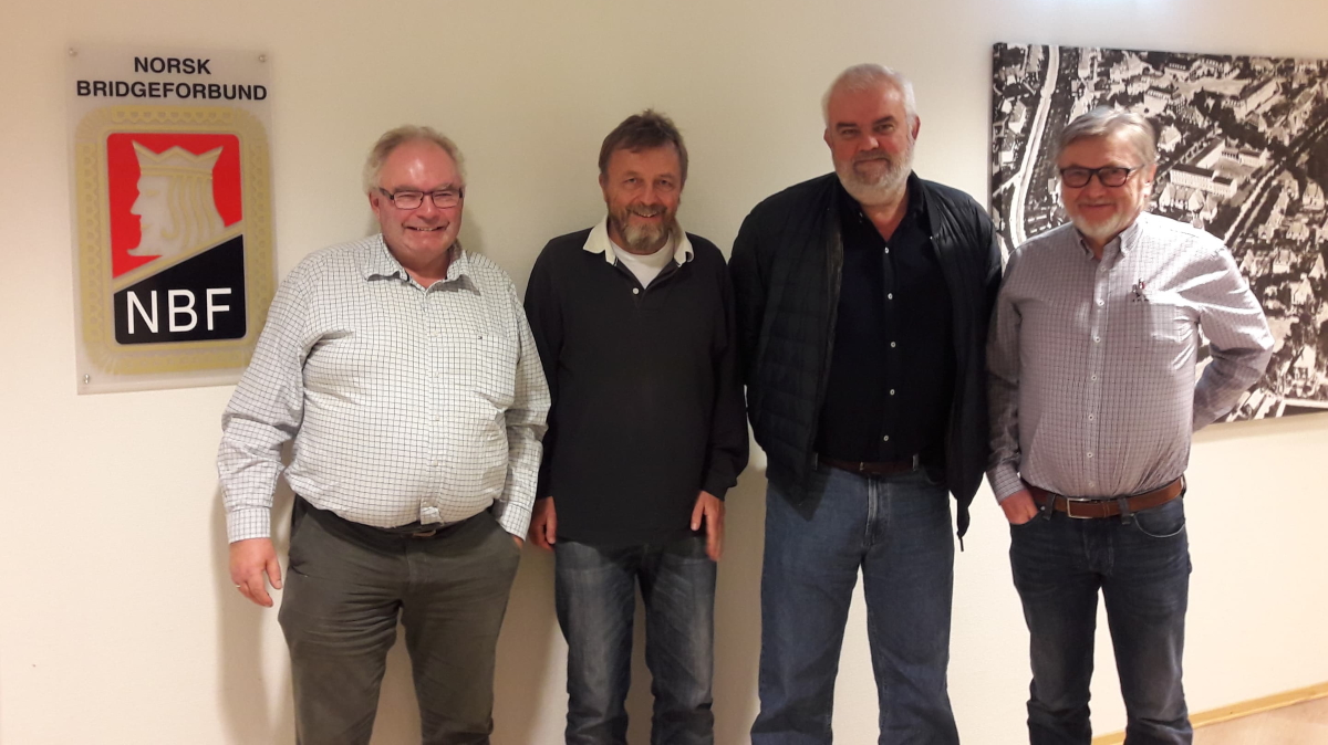 Lag Johnsen under sammenligninga etter fjerde sett, fra venstre Jan Mikkelsen, Sverre Johnsen, Åsmund Stokkeland og Arve Farstad.