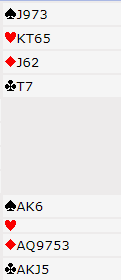 (dette innlegget ble lagt ut noen minutter med noe rot med hensyn til spar/hjerter, men her er korrekt versjon)