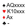 Det skal ikke mye til før 7 ruter er nedlegg. Om makkeren har god ruter står det storeslem. Det skal ikke mer enn esset femte til før det er en veldig bra syver, og selv med AJxx er det en brukbar sjanse. Hvis åpneren har kun esset fjerde i ruter er 7 ruter for hardt da det i så fall avhenger av 2-2 sits i ruter.