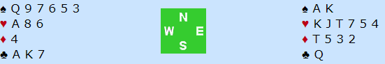 Det er ikke noen dårlig slem, for det er bare den ene taperen i ruter, så 6 hjerter vinnes om trumfen ikke gir taper. Hvis fargen sitter 2-2 (40%) er det greit, og i tillegg kan hjerter dame sitte singel. Alternativt, hvis man har nyttig informasjon kan man legge ned en honnør og ta finesse over han andre hvis sannsynligheten for lengde hos han er størst. Det blir med andre ord en slik slem som vinnes omtrent i halvparten av tilfellene. Det er imidlertid et poeng i meldingene slik de aller fleste melder. «Alle» bruker jo Key Card Blackwood nå til dags. Da får han som spør vite at de mangler både ett nøkkelkort og trumf dame, og når det er slik skal man normalt holde seg unna slem da det mangler ett "ess" og trumfen kan gi en taper.