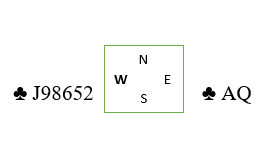 Spar dame er godspilt og gir avkast for en kløver så den finessen i den fargen må ikke lykkes for å vinne 6 hjerter.