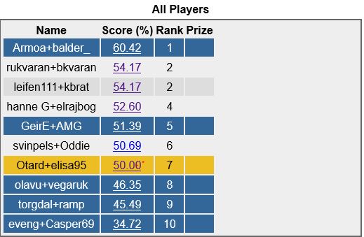 4 Frank Ståle Karlsen Ina Marie Lillevik 52,8 %