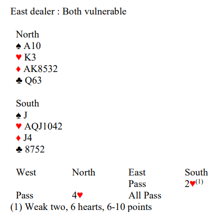Å godspille ruterfargen med ess-konge og en stjeling vil ikke fungere selv om fargen sitter 3-2. Det er ikke noe inntak til nord unntatt eventuelt i andre hjerterrunde. Da vil en motstander fortsatt ha igjen (minst) en trumf så en godspilt ruterfarge kan ikke utnyttes på den måten.