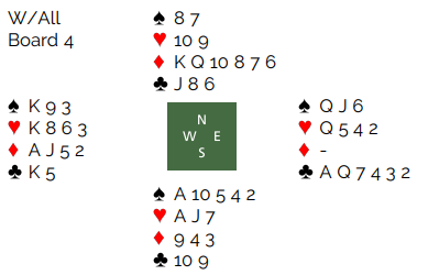 Ved det andre bordet spilte øst 4 hjerter. Kløver 10 kom ut. Spillefører hadde ingen store problemer og tapte kun to trumfstikk og til spar ess.