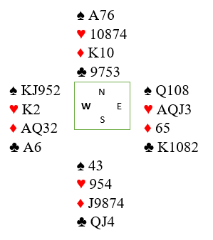 Dermed tapte spillefører tre (!) trumfstikk: ett til esset, en stjeling hos nord og til trumfknekten som sammen med spar ess ga en bet.