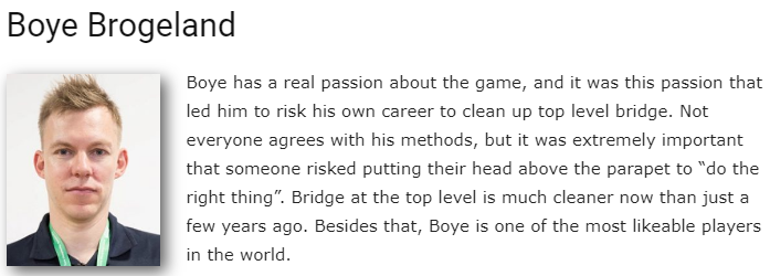 Boye Brogeland har fått plass i EUROPEAN BRIDGE LEAUGE HALL OF FAME!