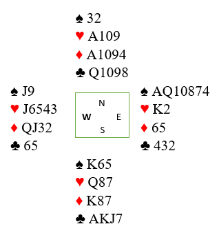 Selv om hjerterutspill er hakket bedre for forsvaret var ruterutspill godt nok siden nok en ruter idet nord er inne på trumfdamen bryter forbindelsen for en fin skvis som ville fungert med for eksempel spar ut.