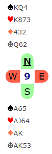 Lag STREET sin spillefører startet med trumfkongen og var raskt en bet i 6 hjerter da vest fikk to trumfstikk. Han ville vunnet kontrakten (selv med 4-2 sits i kløver) hvis øst hadde hatt fire trumf. Etter kongen og liten til knekten (øst har alså i så fall fire hjerter) som vinner ordner spillefører seg med en ruterstjeling hos syd og får tolv stikk. Sitter trumfen 3-2 går det ikke an å gå bet i 6 hjerter.