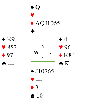 Ved det andre bordet var også syd i 4 spar, men der skiftet Sælensminde til kløver 9 i tredje stikk. De spiller med "invitt inni spillet", og det som mangler i kløver sett fra øst sin side er syds AQJ10, så vest kan om kløver 9 er et ekte kort ikke ha for eksempel kløver dame (hvis ikke han har vært "lur" med kløver Q-9 dobbel). Derfor la øst liten kløver og syd vant med knekten. Nå var det ikke etablert fire kløverstikk som ved det andre bordet, og det måtte jobbes mer for stikkene.