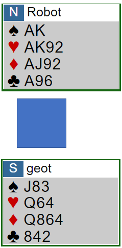 I det neste spillet handler det litt om kortvurdering i meldingene, men også om spilleføringen i de mulige kontraktene. Først syds melde"problem":