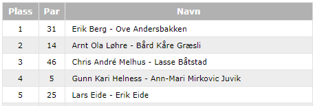 Det ble ganske jevnt i toppen, og slik så det ut for de fem best til slutt, med 80 poeng mellom første- og femteplass: