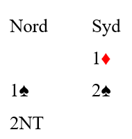 Nord har gode kort, og det kan stå utgang. Det er imidlertid mange håndtyper syd kan ha her, og det syd har er en av dem. For hva er syds andre melding om han ikke skal si 2 spar?