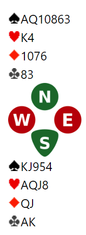Her er et sånt spill fra BBO-turneringen OCBL Super Cup forleden.