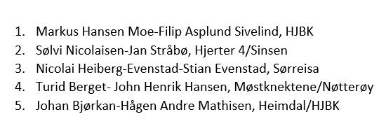 Siden beste juniorpar vant og derfor ble premiert i hovedpremieringen ble Johan Bjørkan - Hågen Andre Mathisen som var nest beste juniorpar premiert som nr. 1 i den klassen. Hele resultatlisten finner du her.