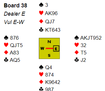 Nå beter Nick 4 spar hvis han skifter til kløver, men dessverre var dette et tilfelle av opp som en løve og ned som en skinnfell. For han fortsatte med ruter, trolig fordi han trodde spillefører kunne ha knekten og vil la den andre ruteren seile. Men spillefører stakk nå med ruter ess og fikk godspilt en hjerter for kløveravkast senere.