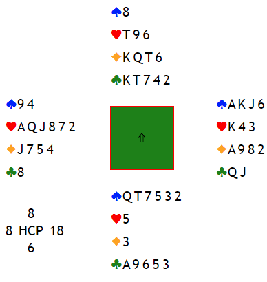 Den lar spillefører seile, og senere er syd ikke med i spillet i det hele tatt. Spillefører får godspilt hjerterstikket som gir kløveravkast.