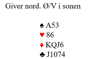Ved de aller fleste bordene passet nord, og det gikk pass rundt. Ved ett bord gikk åpnet nord med 1 ruter. Makkeren svarte 1 hjerter, og nord sa 1NT fulgt av tre passer.