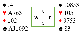 Du stikker altså i første stikk og spiller hjerter. Vest kommer inn og det blir elleve stikk siden din gjenværende honnør dobbel i kløver er beskyttet.