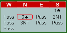 De endte som du ser i 3NT, men her var det feil. Det var en uheldig utvikling i meldingene siden sparutspill neppe ville vært på vest sin radar hvis ikke øst hadde fått sjansen til å doble 3 spar.
