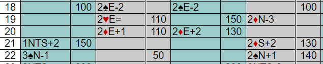 Kun noen få par i de fire puljene spilte 5 kløver, og de gikk bet. Omtrent to tredeler av N/S-parene vant 3NT spilt av syd. Kun ved noen få bord ble det bet i 3NT.