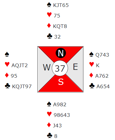 Noen steder åpnet sikkert nord med 2 spar - Tartan - spar og en minor. Da vil syd sperre videre. Vest melder seg på med en eller annen melding, men det blir ikke enkelt å få kontroll på det etter en slik start. Likevel kan agresssive meldinger fra N/S føre til at Ø/V på en måte snubler seg ut i slem.