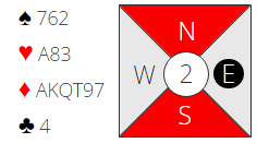 Det må være en sannsnlig slem det her. Du har kun 13 poeng, så til sammen blir det 31 eller 32 poeng til sammen. Men å tenke sånn med slike kort blir å være alt for mye "point counter". For her har du stikk! Som så mange ganger før sagt, resultatet på et spill avgjøres ikke av antall HP, men av hva kontrakten er og antall stikk du får!
