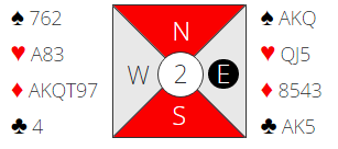 Vi bør satse på slem. Et lite problem kan være at når vi har 31-32 poeng til sammen, men er ganske sikker på at det må være tolv stikk på en eller annen måte, kan det hende vi mangler A-K i en farge, eller kanskje mangler vi to ess til og med. Så de videre meldinger blir veldig avhengige av hvilke avtaler man har hvis man vil gjøre det litt vitenskapelig for å forsøke å finne ut mest mulig. Det er mulig 6 ruter er beste slem, for eksempel om makker har mesteparten av sine honnørpoeng i spar og hjerter og kanskje kun kløver Q-J, eller bare kløver damen er mulig også. Da kan de ta (minst to kløverstikk i grandkontrakt, mens 6 ruter trolig er en sikker kontrakt.
