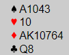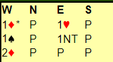 Etter din åpning med 1 ruter og makkers svar 1 hjerter melder du 1 spar. Da sier makker 1NT og det er din tur. Hva melder du nå?