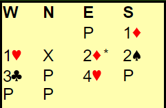 Du skal spille ut mot 4H etter 2 ruter (syd) som var Flannery, vanligvis 4S or 5H og 11-16. På 2NT fra nord viste syd minimum og singelton kløver.