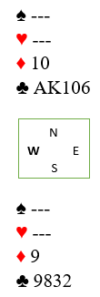 Merk at om ruteren sitter 4-0 er det safespill for null rutertaper ved å starte med esset eller damen først (oppdager en eventuell 4-0 sits). Hjerter dame kom i utspill, og da kunne hun om nødvendig får tre hjerterstikk også, men det behøves ikke, selv etter spar eller trumf ut.