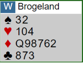 Som du ser er det også tolv stikk i grand, men lilleslem i ruter er tryggere. Kløveren kan jo sitte bak AK10x, og da er det kun elleve sikre stikk i grandkontrakten.