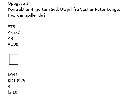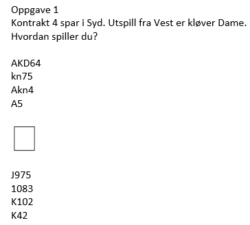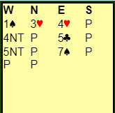 Slik det gikk her ville aldri N/S fått spille 5 hjerter, og Ø/V vil aldri funnet på å melde slem etter denne utviklingen hvor de altså allerede hadde stoppet i 4 spar.