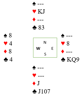 Vest sin 2 spar viste spar og en minor, og 3 ruter var minst invitt til utgang med støtte i majorfargen. Vest kunne vurdert å vise en makshånd for sin åpningsmelding med 4 ruter, og i så fall har øst en bedre sjansen til å melde slem siden han da vet hvilken minorfarge vest har. Maksimalresultatet hvis ikke de melder slem men ikke får spille den er +500 hvis N/S stamper i 7 hjerter.