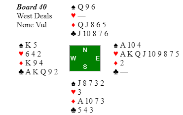 Bridge er ikke bestandig alltid helt rettferdig, og her fikk Ø/V en "room top" etter å ha meldt 7NT vel vitende om at de mangler ett ess!