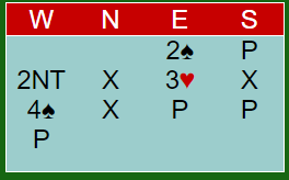 Bare 2,3 poeng hadde Hox- Nordby å taigjen på Holm- Trondsen da de hadde WO- runde siste 3 spill med forventet +0,8 på apill i kompensasjon. Men sølvparet møtte Anne og Herlov Langgård som ikke er enkel motstand. Opponentene vant 1 poeng på sp 25, spill 27 var butt men her falt avgjørelsen i spill 26 med Syd og ingen i faresone. Du kan gjette kontrakt når Ø-V får melde uforstyrret.