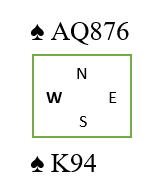 I teorien kan du da dobbelfiske med liten til kongen og dra nieren som får seile om vest legger liten. Men det er med åpne kort og fryktelig spilt etter kongen som øst legger liten på å la nieren seile om vest ikke dekker, helt mot oddsen. Men om vest dekker nieren blir det helenkelt da sitsen oppdages og en finesse kan over J-x kan tas senere med Q-8-x. Så det går vel an å legge ut et åte? Husk vest ser ikke nords kort. Men da må du ha flere inntak til syd slik at du løser den nevnte sitsen med tier eller knekt singel hos øst også. Det blir bare litt mer kronglete. Å fravike standardmåten å spille fargen på (ess eller dame først) kan gi ekstra stikk om vest ikke er helt i form.