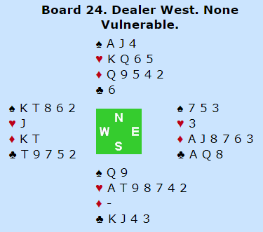 Pluss 750 var på ingen måte "room-top". Ett par til noterte samme score og to lag var i 6 hjerter doblet og noterte +1210.