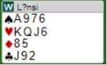 Dette er vests kort. Øst er giver og Ø/V i sonen. Makkeren til den finske vest åpnet med 1 spar. Syd hoppet innpå med 3 kløver som viste begge minor. Vest sa 4 spar, men det fikk de ikke spille. Nord sa 5 ruter og det gikk to passer tilbake til vest. Hva ville du meldt nå?