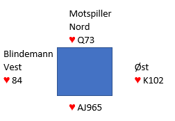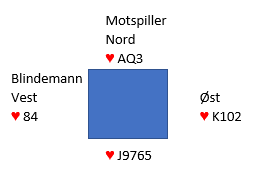 Øst spiller ut hjerter ess (A fra A-K). Dette kommer ned hos blindemann: