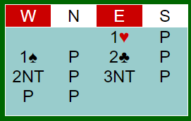 Jeg er ikke helt sikker på betydningen av østs 2 kløver, men mistenker det var såkalt Gazilli (minst 16 poeng og ikke nødvendigvis kløverfarge).