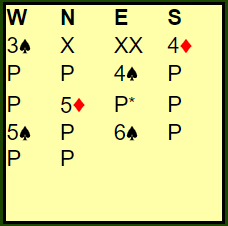Det tok lang tid før utspillet kom, i alle fall virket det slik under overføringen på BBO. Man kan anta det var en god del spørsmål om betydningen av meldingsforløpet.