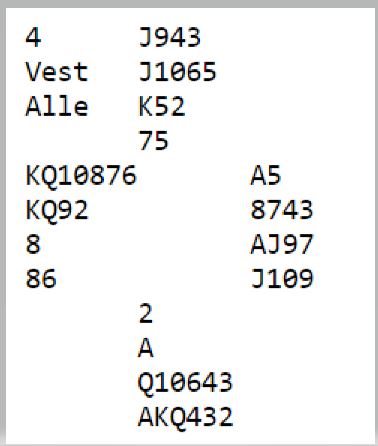 Slik det var hadde ikke N/S så mye i kortene, men det var likevel viktig å være med et par ganger. Slik så hele spillet ut: