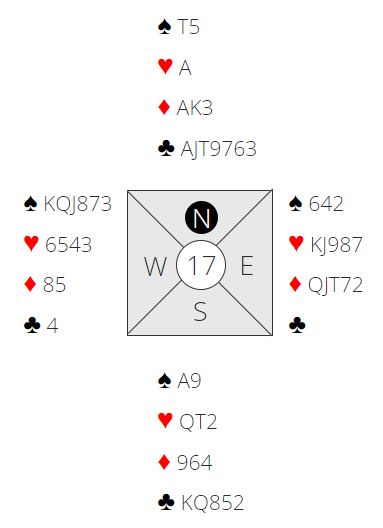 //Det blir bare elleve stikk i kløverkontrakt om N/S spiller det, litt uheldig for de som eventuelt melder 6 kløver.//