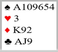 Svaret 5 spar som viste to nøkkelkort OG TRUMF DAME (som han altså ikke hadde) var en fin liten julegave til syd som var en spiller som kunne telle til tretten. For syd har jo trumfdamen selv. Så enten har nord tatt feil i meldeboksen (skulle meldt 5 hjerter), eller så har han sekskorts spar. Og man må vel tro på at at makker vet hva han driver med? Idet syd fikk vite om ruter konge også kunne han telle seks sparstikk, ett hjerterstikk, fire ruterstikk og to kløverstikk = 13 stikk fra topp! Da er det ingen vits i å melde 7 spar, men heller ta med det lille ekstra 7NT gir. Dessuten er jo 7NT sikrere, det kan jo en sjelden gang komme ruter ut til stjeling i sparkontrakt.