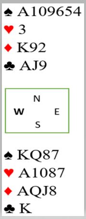 Her vet nord at syd har minst fire spar, så makkerparet har minst ti trumf til sammen. Da kan han vise trumf dame og i dette tilfellet si 5 spar, to nøkkelkort (spar ess og kløver ess) samt trumf dame! Syd fortsetter med 5NT, kongespørsmål og storeslemsinteresse. N/S brukte svar som viser spesifikk konge, så nord sa 6 ruter - ruter konge. Da meldte syd 7NT!