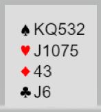 Syd er giver og alle i sonen. Syd åpner med 1 ruter. Melder du inn 1 spar med dette?